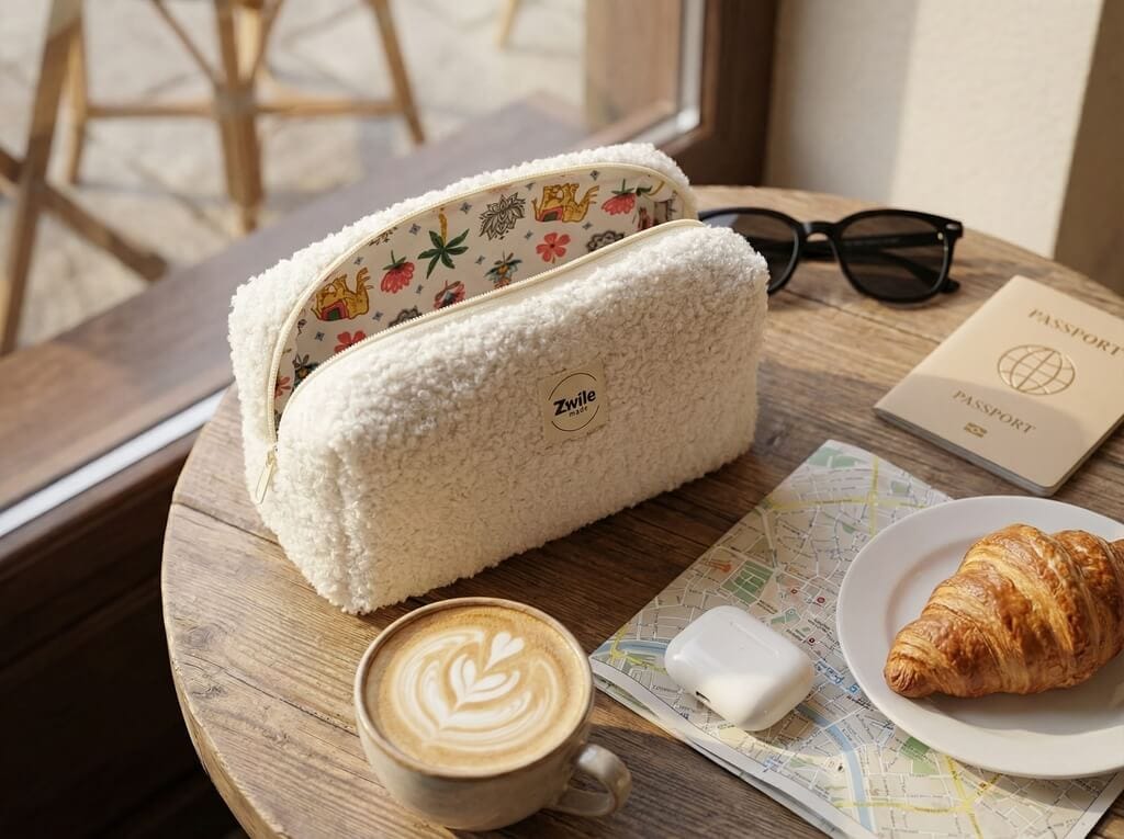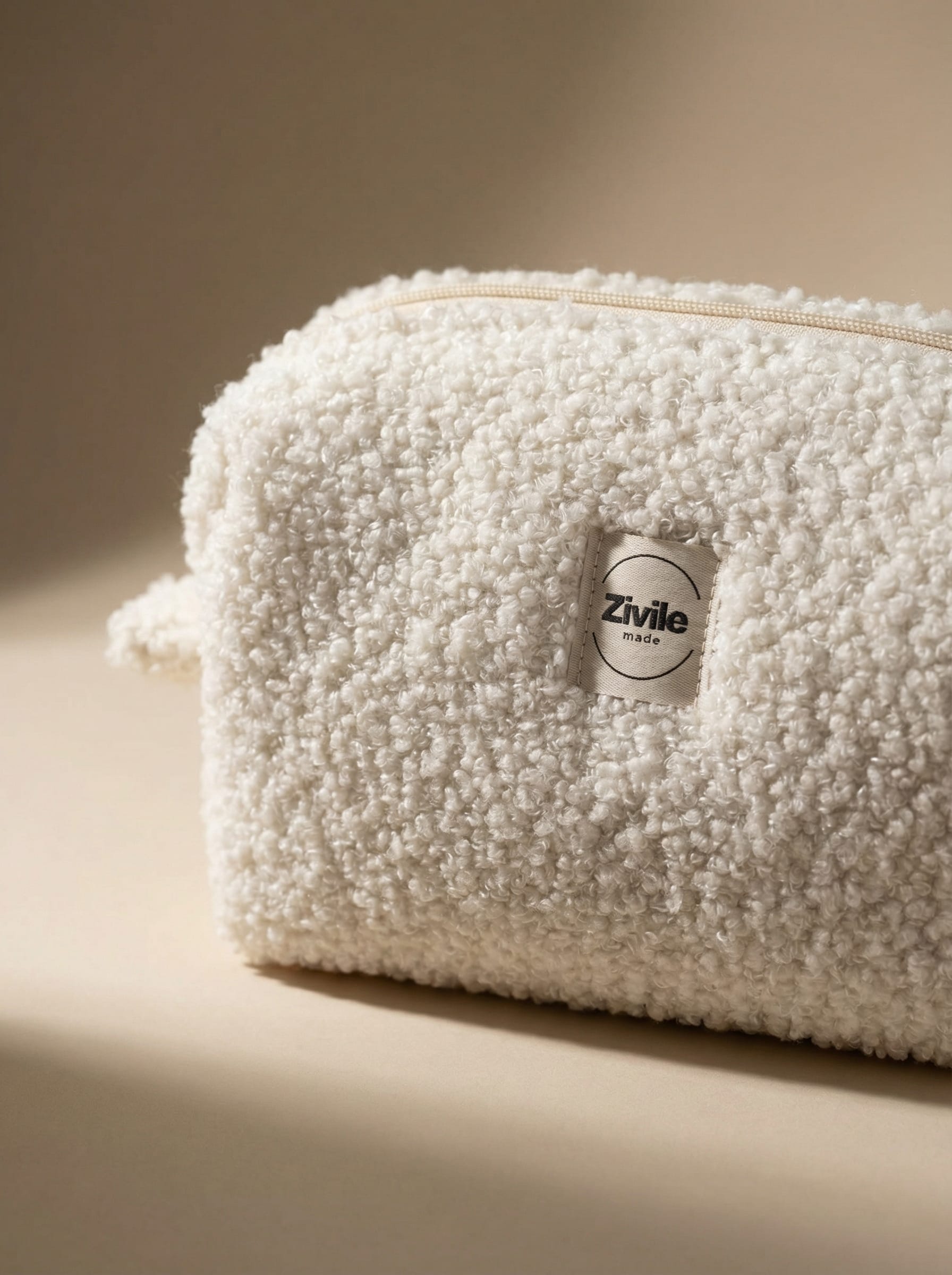 Ši balta teddy kosmetinė – švari, švelni ir lengvai priderinama prie bet kokio stiliaus. Išorė pasiūta iš minkšto, tekstūriško teddy audinio, kuris suteikia jaukumo ir subtilios elegancijos pojūtį, o vidus iš 100 % medvilnės džiugina spalvingu, išskirtiniu raštu. Atsegus užtrauktuką atsiveria talpi ir patogi erdvė makiažo priemonėms, odos priežiūros produktams ar kitoms kasdienėms smulkmenoms.